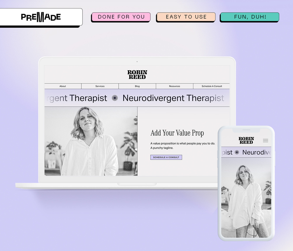The Divergent 7.1 Squarespace Website Template is a funky and fun, yet also professional website template for therapists and coaches. The layout is structured to easily add content about your practice in an organized and approachable way to attract your ideal client.